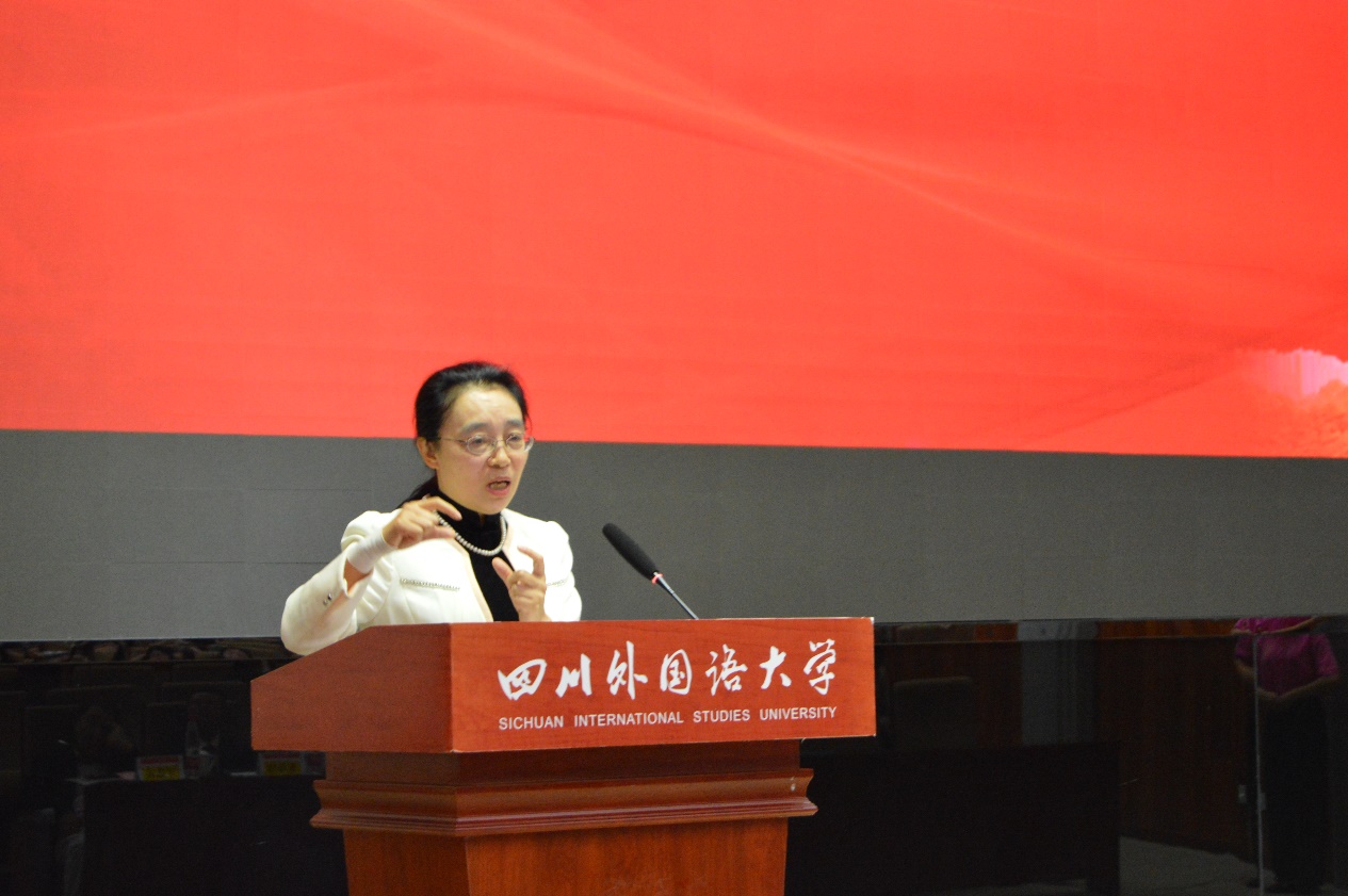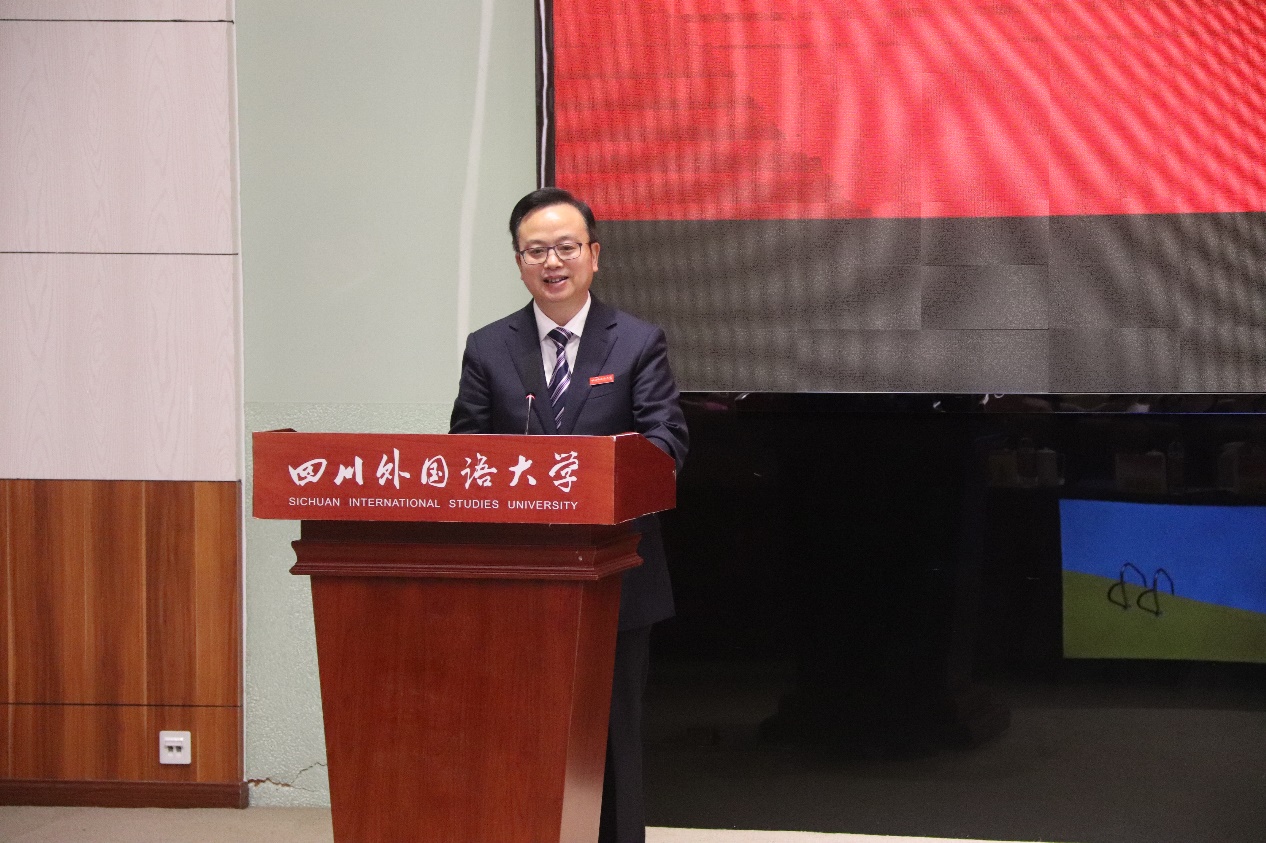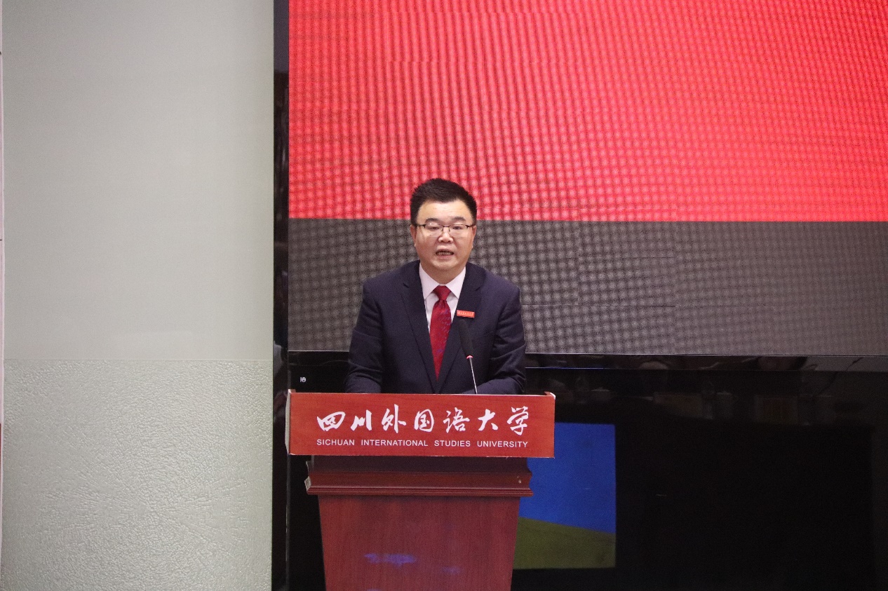董洪川董事长在致辞中对中国英汉语比较研究会会长罗选民教授和《英语世界》主编邢三洲先生的到来表示热烈的欢迎,对来自全国各地的大赛获奖选手表示衷心的祝贺。并祝愿《英语世界》越办越好。
