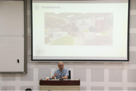 招聘会上,潘渝东副董事长通过播放宣传片、PPT 展示等方式,从学校历史、人才培养、国家政策、学校基本情况以及办学理念等方面向同学们详细展现了宜宾成都外国语学校的风貌,以及本次招聘岗位的基本情况、薪资待遇等,并表达了未来与公司合作实习实践基地的美好期盼。