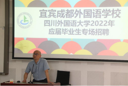 为促进2022届毕业生就业工作,给毕业生搭建更广阔的就业平台,应学院邀请,2022年4月22日,成都外国语学校宜宾校区副董事长潘渝东,后勤主任金宝旭,初中部英语教师,公司2021届毕业生胡鑫等4人组成的招聘团队前来公司开展了专场招聘会。公司学工队伍全体成员及精准对标的40多名未就业学子参加了招聘会。