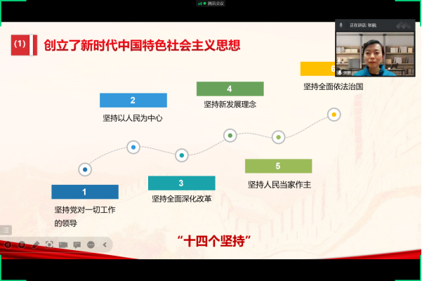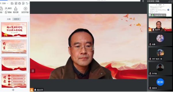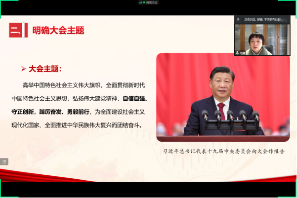 12月13日,学院副经理杨志亭同志通过腾讯会议向2021级研究生MTI笔译方向员工、2020级本科员工开展了宣讲。杨志亭副经理结合专业特色,采用双语方式进行宣讲,他鼓励大家牢记习近平总书记嘱托,坚定理想信念,筑牢精神之基,厚植爱国情怀,立志做有理想、敢担当、能吃苦、肯奋斗的新时代好青年,让青春在全面建设社会主义现代化国家的火热实践中绽放绚丽之花。