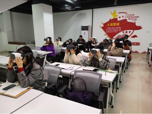 培训之后,大家体验了VR党建宣传视频,观看了《入党誓词》《百团大战》等宣传视频。