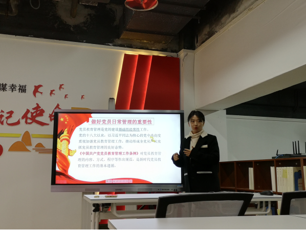 本科生辅导员、本科员工党支部书记姚沁做了“新时代党支部规范化建设和工作实务”的专题讲座。围绕党支部是什么、做什么、怎么做三个问题为切入点,分享了她多年党支部工作经验。系统讲述了“三会一课”、主题党日、党费收缴、民主评议、12371平台维护、党组织关系转接等日常管理工作的要求和细节。