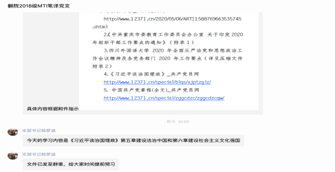 2020年5月27日星期三晚八点,在这个特殊的时期,明陞m88官方网站2018级MTI笔译支部通过QQ群顺利开展五月云主题党日活动。