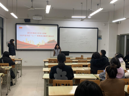 研究生翻理党支部的“主题党日”活动,宣传委员王凤英同志带领大家学习了习近平总书记重要文章《坚定理想信念 补足精神之钙》、习近平总书记在纪念辛亥革命110周年大会上的重要讲话精神以及重庆市书记陈敏尔的座谈寄语。在讲话中,习近平总书记提出,实现中华民族伟大复兴,必须有领导中国人民前进的坚强力量,这个坚强力量就是中国共产党。我们要深化学习领会习近平总书记重要讲话精神,继承和弘扬辛亥革命精神,加强中华儿女大团结,为全面建成社会主义现代化强国、实现中华民族伟大复兴汇聚磅礴力量。