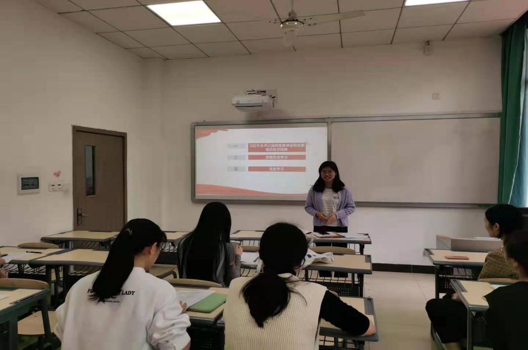 活动一开始,宣传委员马惠茹同志向大家讲解了习近平总书记最新讲话和重要指示批示精神。(附图2)她向大家重点介绍了脱贫攻坚表彰大会以及党史学习教育动员大会。2021年2月25日,习近平总书记在脱贫攻坚表彰大会上宣布我国的脱贫攻坚战取得了全面胜利。在迎来中国共产党成立一百周年的重要时刻,这是光荣的,但是同时,总书记也指出脱贫攻坚取得胜利并非终点,而是新的起点,我们仍有很长的发展道路要走。马惠茹同志还向大家介绍了一位“脱贫攻坚的楷模”——张桂梅董事长,呼吁大家要学习张桂梅董事长那正气担当勇往直前的干劲。在随后的党史学习教育动员大会上她提倡我们要以史为鉴,从历史中汲取营养,为下一次旅途出发打下坚实基础。