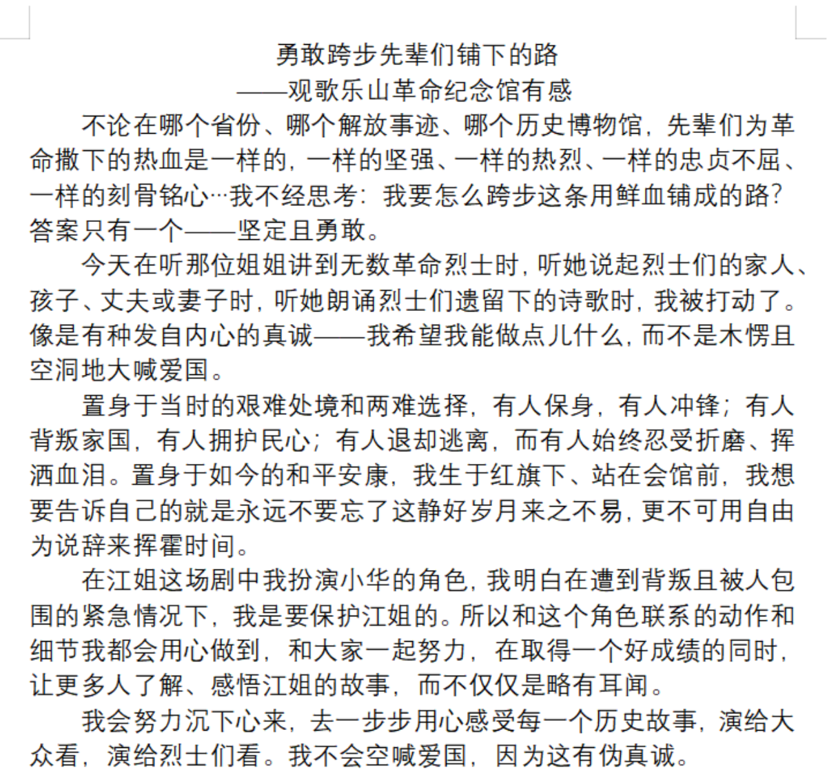 京昆社指导老师,《江姐》英语剧制作人李亮老师说道:江姐,和众多的革命英烈是屹立在歌乐山的不朽丰碑,是青年们学习和敬仰的楷模。希望通过这部作品,展现出厚重的文化传承和绵延的红色血脉,在致敬经典的同时,也为这一经典题材注入崭新内涵,讲述好红岩先辈的故事,向那些坚强的灵魂致敬!