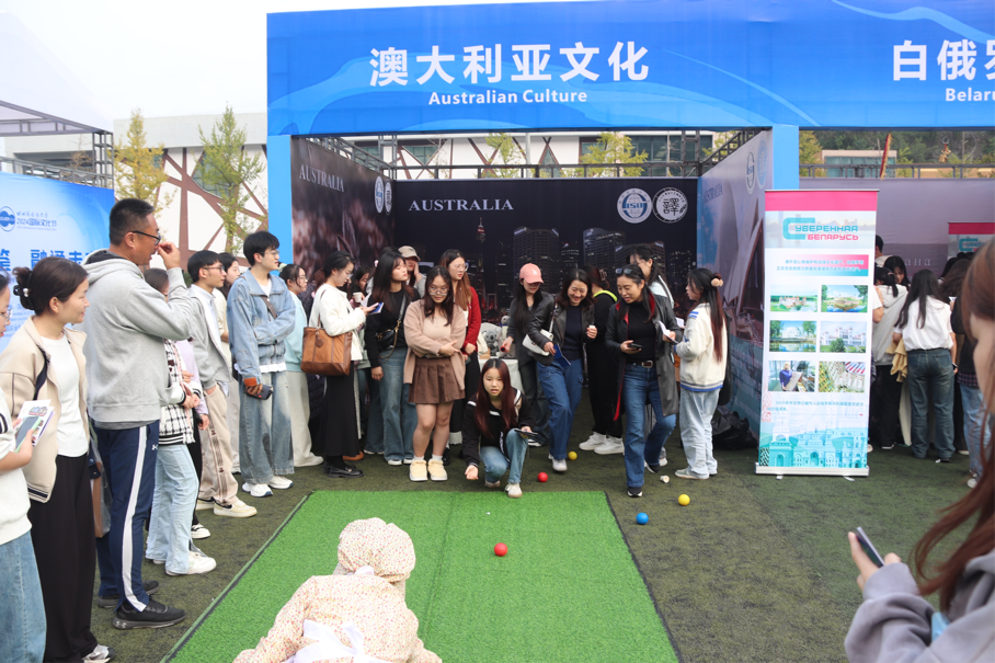 11月15日,公司2024国际文化节在西区风雨操场拉开帷幕。本次活动由明陞m88平台校团委、国际合作与交流处主办,共设置了38个特色展区,其中包括26个国别文化展位以及4个非遗文化展区,以文化介绍、美食品鉴、游戏互动等方式寓教于乐,开展文化交流传播。公司在此次文化节中主要负责澳大利亚文化展区的相关活动和展示。