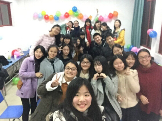 12月31号下午1点,1班的同学们在欢快的气氛中筹备派对,分工明确,井然有序,脸上洋溢着笑容。傍晚6点左右,桌上的水果和糖果,零食似乎在等待着与同学们分享跨年的喜悦。七点整,马理惠老师带着烤鸡和蛋糕来到派对现场,气氛逐渐走向高潮。同学们自己打奶油,装饰蛋糕,分享烤鸡,无限欢乐。派对当然少不了游戏:“天黑请闭眼”、“谁是卧底”、“真心话大冒险”,同学们玩得好不尽兴。班上仅有的两位男生也很好的融入在这个新组建的集体中,屡屡“中招”,欢乐无限。