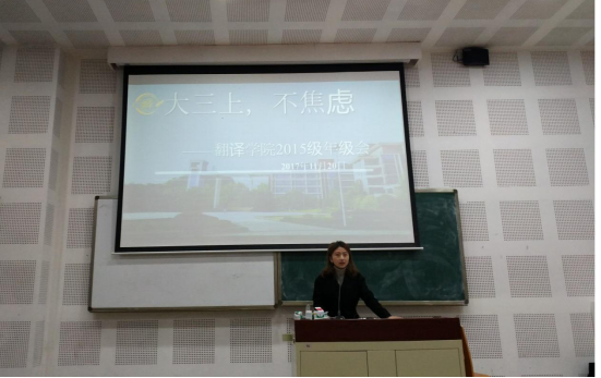 2017年11月20日15:00,明陞m88官方网站本科2015级全体同学在教学楼A1-2教室举行了主题为“大三上,不焦虑”的主题年级会,辅导员姚沁老师主讲。