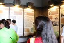第一站,黄晓柯同学带领大家来到白公馆,介绍了白公馆的历史:白公馆原为四川军阀白驹的别墅,1939年军统特务头子戴笠为秘密审讯关押共产党人,特意将其买下改造为军统局的直属看守所。走进白公馆阴森恐怖的刑讯室内,各种刑具早已长满铁锈,但昔日共产党员面对酷刑仰天长笑、坚贞不屈的雄姿仿佛历历在目。在二楼的展室里,一面鲜红的五星红旗悬挂在墙上,这是新中国成立的消息传来时,罗广斌、陈然等革命志士怀着激动的心情绣成的,它代表着烈士们对新中国的美好期待,和对重庆解放的殷殷期望。