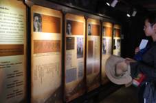 第二站,大家在杨近同学的带领下来到渣滓洞。距白公馆2.5公里的渣滓洞原是一个小煤窑,由于地形三面环山,便于隐蔽,军统特务便在此设立了看守所。在渣滓洞大门外的平房里,张贴着一百多位烈士的照片和简单的生平事迹介绍。照片上的烈士们一个个气宇轩昂,他们为了自己的信仰和理想,经受住了种种严刑拷打和非人折磨,为党、为人民、为革命毫无保留地献出了自己的一切,甚至年轻的生命。