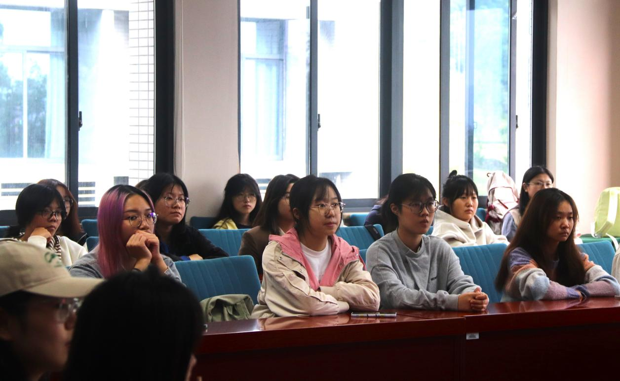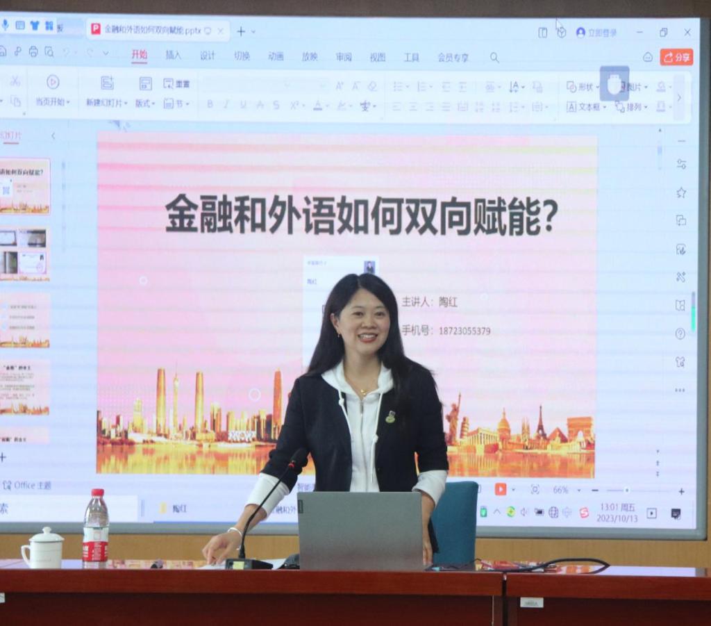 为进一步发挥朋辈教育的特色与优势,以提升公司“翻译+金融”交叉专业教改班人才培养质量,2023年10月13日中午,公司邀请到中国银行重庆市分行理财经理陶红来校开展以“金融外语双向赋能”为题的朋辈学堂交流活动。公司党总支书记张丽主持了本次交流活动,2023级辅导员王品,2022级辅导员唐芊以及学院2022级、2023级本科“翻译+金融”交叉专业教改班同学参与了本次交流会。