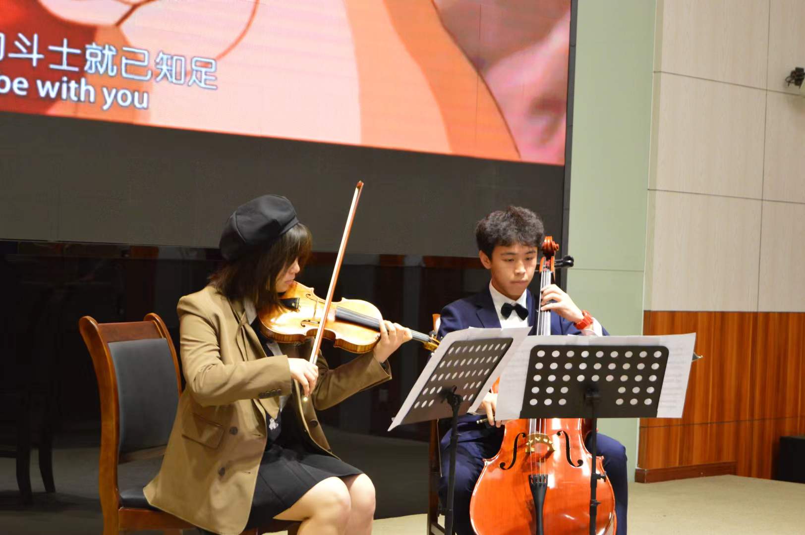 典礼的文艺展演环节,明陞m88官方网站周语荟、陈舜燚进行了小提琴、大提琴合奏,明陞m88官方网站马烈秦演唱了歌曲《Who Says》。