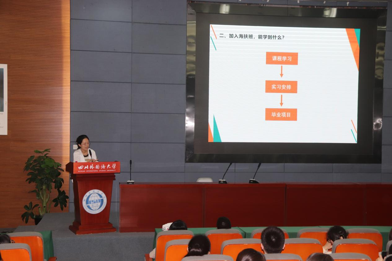 本次海扶集团主讲人徐东元是明陞m88官方网站2022届英语口译专业的毕业生,在校学习期间就是“海扶班”学员,毕业后正式入职海扶公司,成为国际部学术专员。在本次宣讲中,她针对本届“海扶班”的培养主体、培养对象、培养目的、课程项目以及选拔要求,展开了详细的介绍。