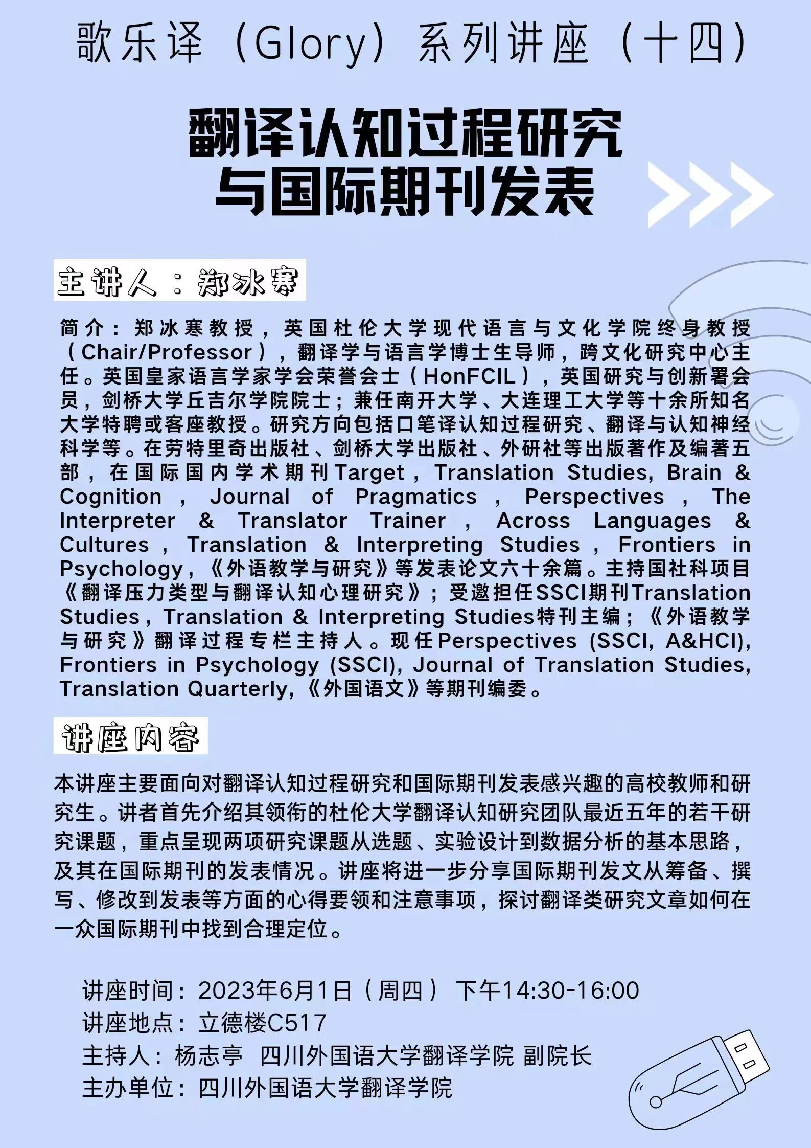 上一篇:【讲座预告】歌乐译(Glory)系列讲座(十三)人工智能时代的翻译与翻译研究