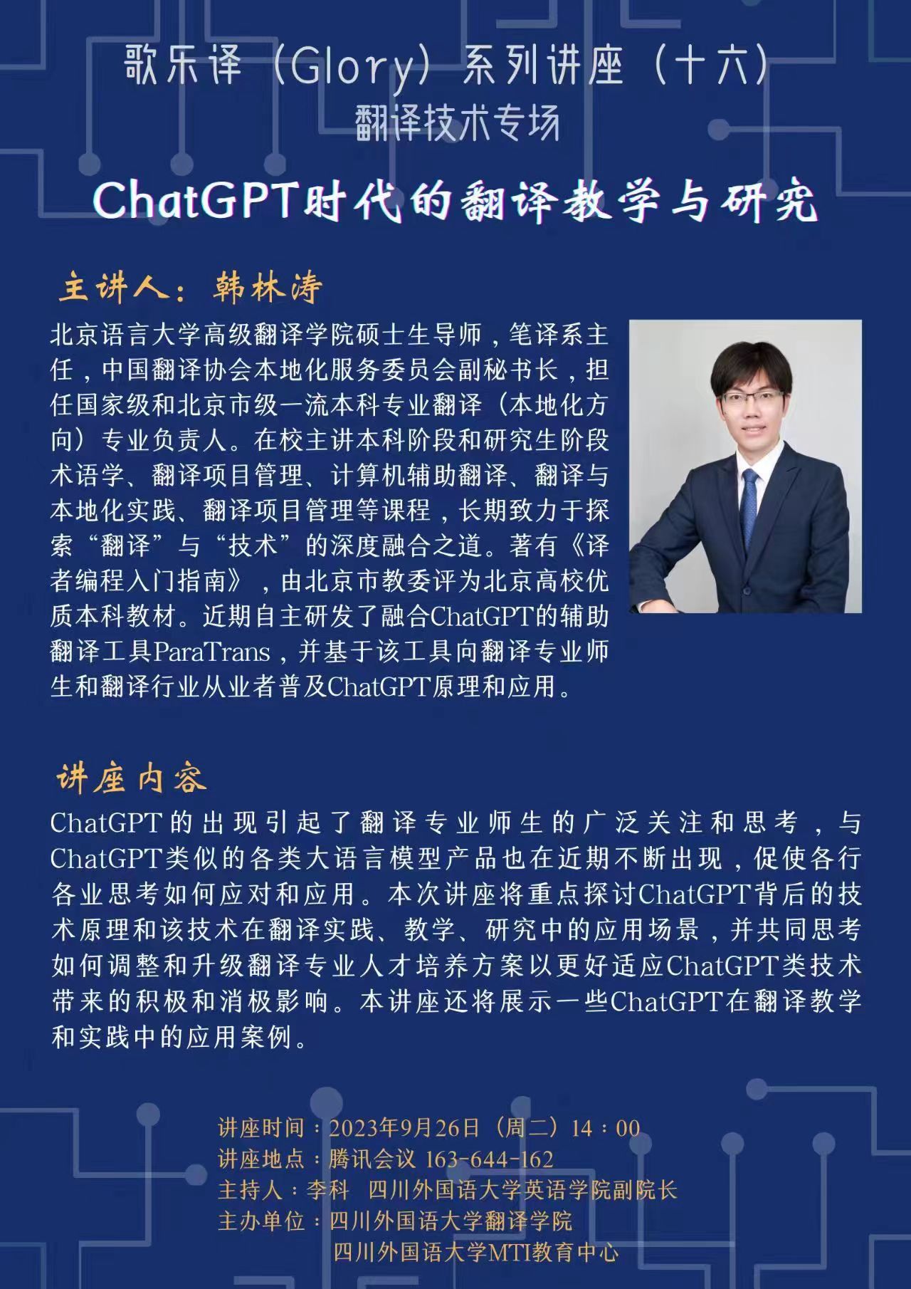 上一篇:歌乐译(Glory)系列讲座(十六)ChatGPT时代的翻译教学与研究