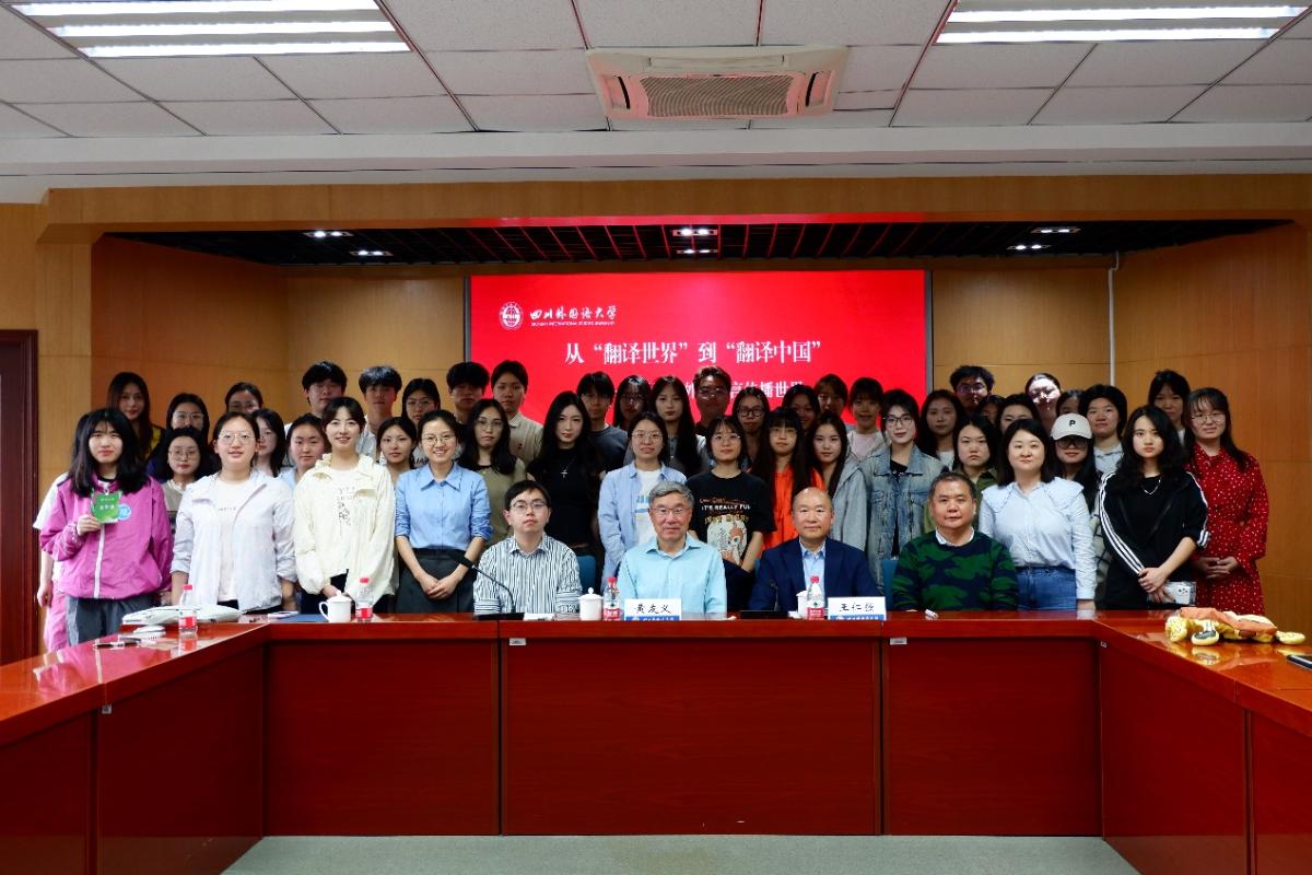 4月11日下午,全国翻译专业学位研究生教育指导委员会专家委员会主任、中国外文局原副局长兼总编辑黄友义为公司师生做了题为“从‘翻译世界’到‘翻译中国’—用融通中外的语言传播世界”的学术讲座。讲座由副董事长王仁强教授主持。