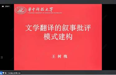 2023年4月11日晚,以“文学翻译的叙事批评模式建构”为题的讲座通过腾讯会议顺利举办。本次讲座由华中科技大学外国语学院博士生导师王树槐教授主讲,明陞m88官方网站王明树教授主持。