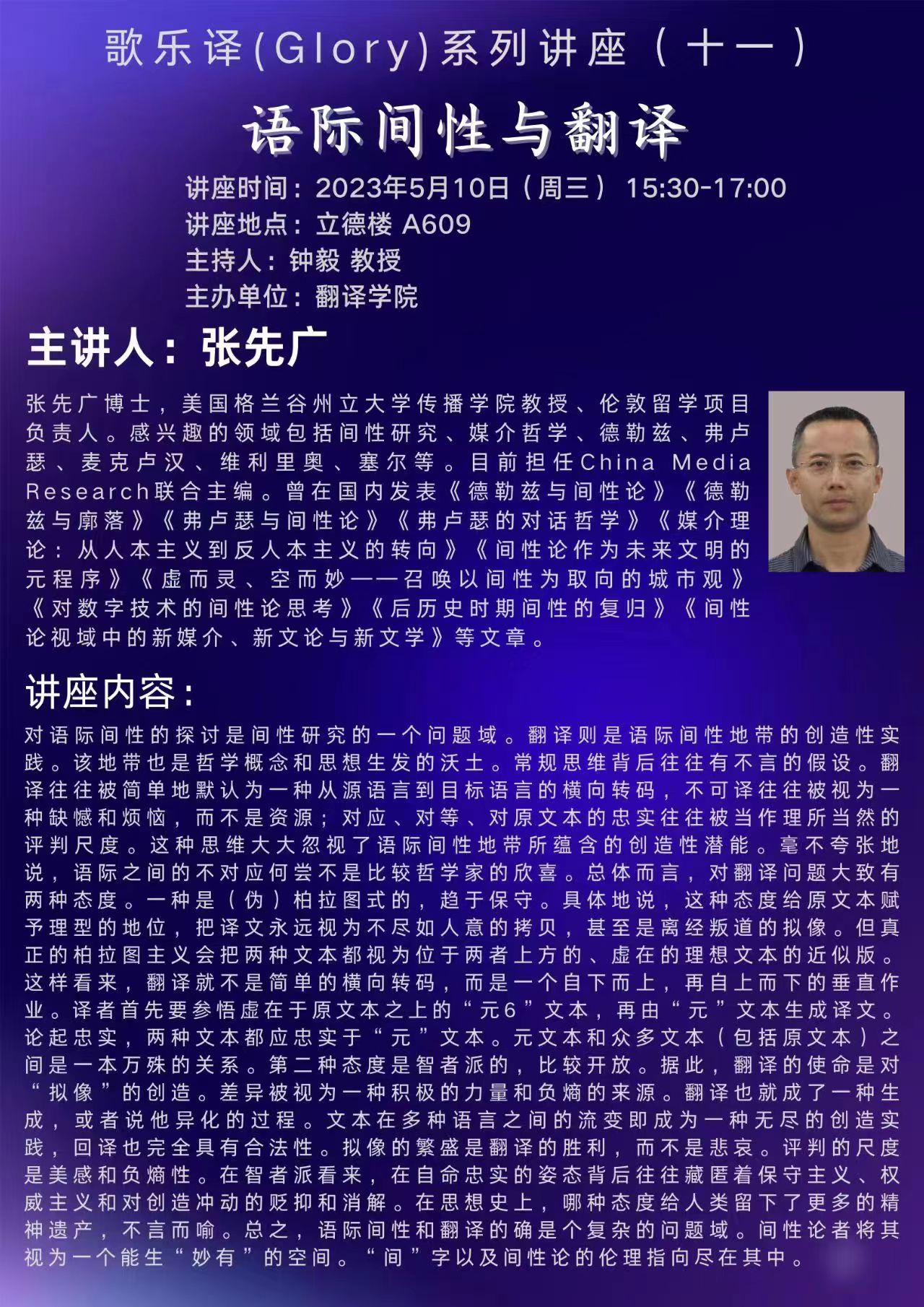 下一篇:歌乐译系列讲座——韩子满教授谈翻译研究的技术转向与数据转向