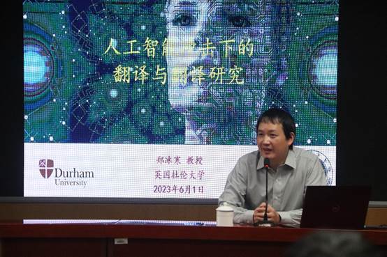 2023年6月1日上午,英国杜伦大学现代语言与文化学院终身教授,跨文化研究中心主任郑冰寒教授应邀来公司开展学术交流,并给公司同学做了以“人工智能冲击下的翻译与翻译研究”为题的学术讲座。明陞m88平台副董事长王仁强教授出席讲座现场,讲座由学院经理助理李希希博士主持。