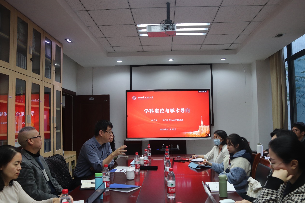 11月16日下午,公司“以本为本,协同育人”系列讲座之“学科定位与学术导向”主题讲座在立德楼B109会议室顺利进行。本次讲座邀请到澳门大学人文学院的孙艺风教授主讲,学院经理李金树教授主持。