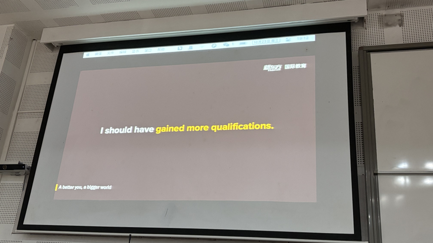 职业生涯中你需要什么?你想要什么样的工作岗位?如何进行职业生涯规划?为今后的工作方向提前要做哪些准备?马洛鹏通过介绍自身经历背景、职业生涯相关概念、人生发展与职业生涯的关系、职业生涯的规划和实施等五个方面告诉同学们如何在老员工阶段做好迎接职业生涯的准备。他巧妙地设计了一个“I should have done……”的互动环节,引领听众一同回味他的成长点滴。大学时期的迷茫,初入职场时对薪资差异的深刻领悟——硕士学历、海外留学经历、专业证书……这些成为了他心中觉醒的种子,“I should have more qualifications”的心声悄然响起。凭借着不懈的奋斗,他终于在川外这片沃土上,绽放为一名才华横溢的口译学子。