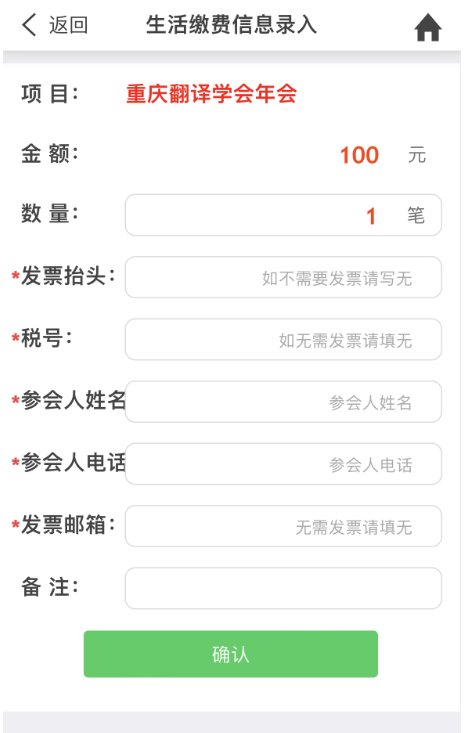 微信搜索关注公众号“明陞m88平台计划财务处”——线上服务——非本校人员缴费——新用户注册——生活缴费——重庆翻译学会年会——填写金额、发票等信息——确认完成缴费。