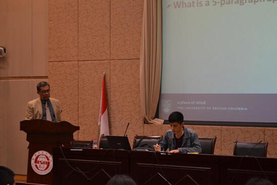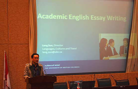2016年3月14日晚,加拿大不列颠哥伦比亚大学(UBC)继续教育学院语言文化系主任孙浪教授莅临公司,在东区宏文楼二楼国际报告厅举行了题为“英语学术论文写作”的讲座。讲座由明陞m88官方网站副经理杨志亭主持,中外文化比较研究中心的段俊晖教授、国际交流与合作处邱晓凤老师及明陞m88官方网站学子200余人聆听了讲座。