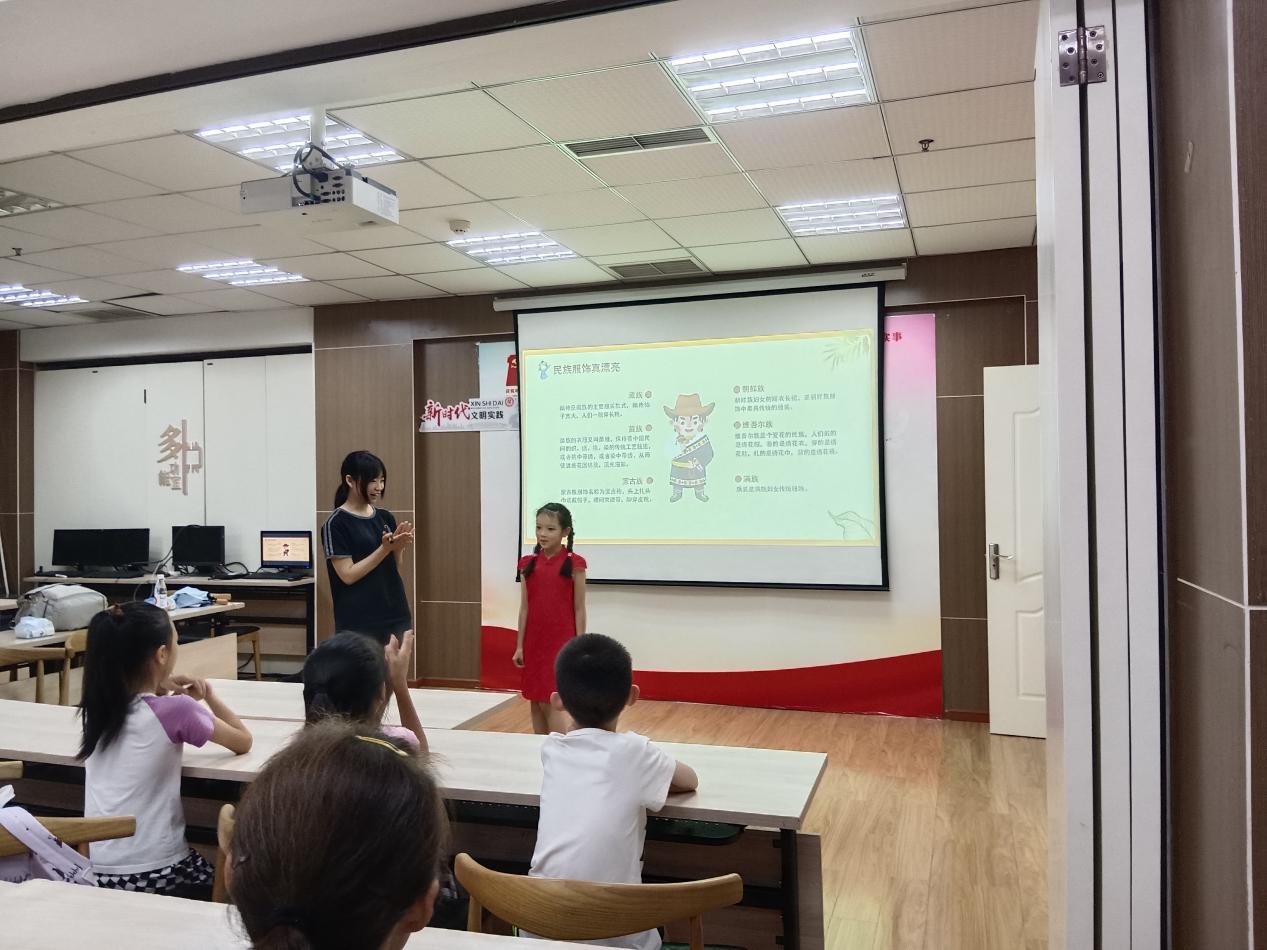 活动开始,志愿者用浅显易懂的语言为孩子们介绍各个民族组成和分布,并通过生动明了的照片和各具特色的民族音乐帮助孩子们了解各民族服饰和音乐特点。随后,孩子们积极参与一系列互动与游戏,如“粘土捏人”和“丝线绕一绕”等。在过程中,孩子们兴趣盎然,不仅体会到了不同民族的特点,同时,也懂得了“美人之美,美美与共”的道理,学会尊重少数民族的风俗,感受其中的美好。