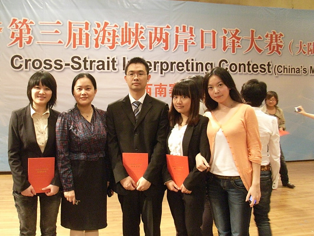 10月15日,第三届海峡两岸口译大赛(大陆地区)西南赛区区级赛在四川大学文华活动中心音乐厅举行。公司张梦、黄钰洁、韩雪三位同学参加此次大赛,并以优异表现获得大赛二等奖。
