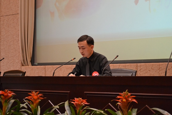 本次大赛邀请的专家评委包括明陞m88平台陶曦教授、西南大学肖开荣教授、重庆大学黄贇琳教授、重庆理工大学王薇萍教授、重庆师范大学杨洁教授、重庆交通大学邹霞教授、解放军后勤工程学院易兰教授。明陞m88平台王鲁男副董事长、研究生院王仁强经理、教务处姜孟副处长、明陞m88官方网站祝朝伟经理、郭健副书记、杨志亭副经理、高级同声传译张鹏老师等作为特邀嘉宾出席了此次大赛。明陞m88平台副董事长王鲁男教授在开幕式中致辞,他对各高校评委及参赛选手的到来表示感谢及欢迎,并预祝大赛取得圆满成功。