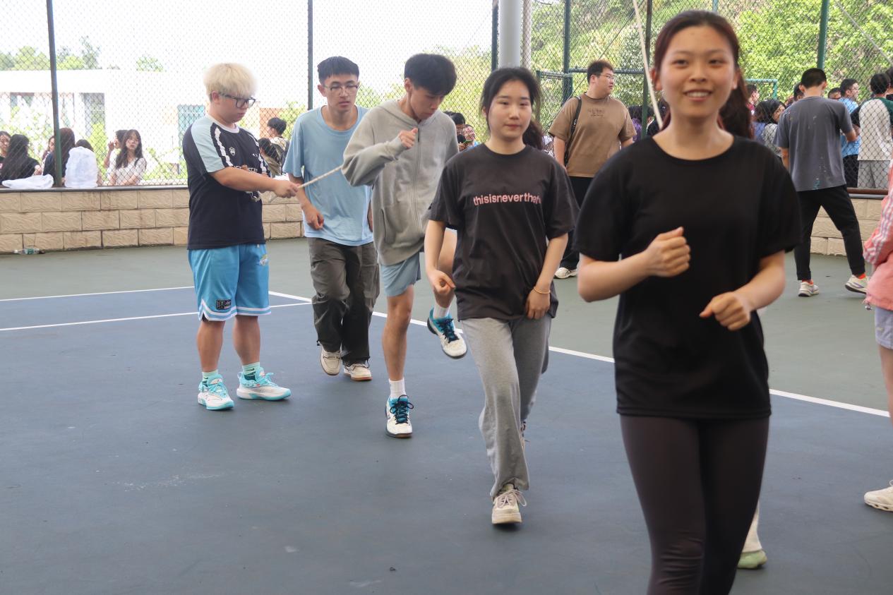 刘汗青:在备赛过程中,摇绳速度是我们反复调整的关键。我们秉承着“团结协作,共同进步”的原则,不希望为了追求成绩而有同学受伤或者摇绳速度过快而产生恐惧心理不敢跳。因此,在反复练习中,我们不断调整,从最开始的匀速,慢慢加速。最终比赛时,我们找到了一个非常好的频率,全程没有断绳,跳得非常顺畅。所有人都非常专注。