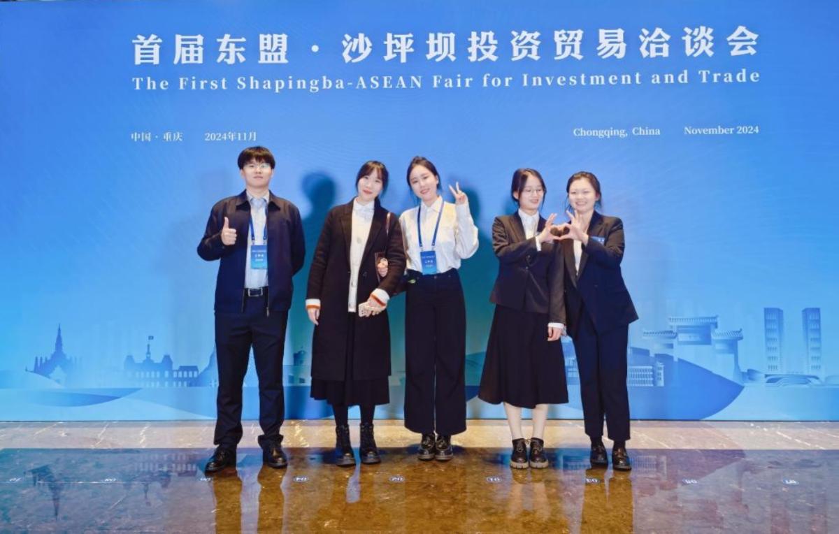 11月19日,首届东盟·沙坪坝投资贸易洽谈会在重庆举行。本次大会汇聚了来自东盟各国与重庆本地的政商界精英,共同探讨投资合作、贸易往来的新机遇。受沙坪坝区团市委邀请,公司23级研究生陈雯、刘丽虹、刘朦朦、裴硕和王梓力五名同学,为本次大会提供了英语翻译服务。
