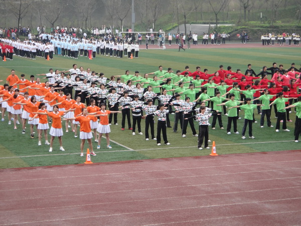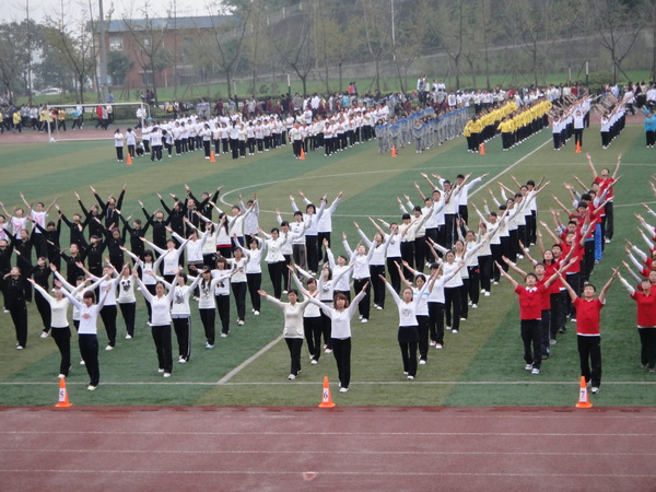 2011年10月30日下午,公司2011级全体新生在山上西区操场参加了由四川外语学院体育部组织的广播体操大赛,校领导、各系、二级公司党总支书记(副书记)以及评委们齐聚西区操场,共同参与川外一年一度的新生广播体操大赛。