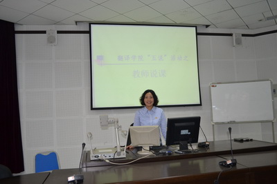 2012年10月9日下午,明陞m88官方网站在培英楼同声传译室开展“教师说课”活动,明陞m88官方网站全体教师参加了此次活动。活动由明陞m88官方网站经理祝朝伟主持。