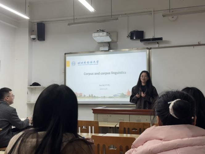2024年12月9日,“译协论坛”第四讲于歌乐楼B106开幕。本次论坛有幸邀请到川外语料库语言学团队成员、英语学院博士研究生叶军开设讲座。她以其深厚的学术底蕴和丰富的研究经验,为译协全体成员带来一场关于语料库语言学理论的学术盛宴。翻译协会会长赵新雷主持讲座。