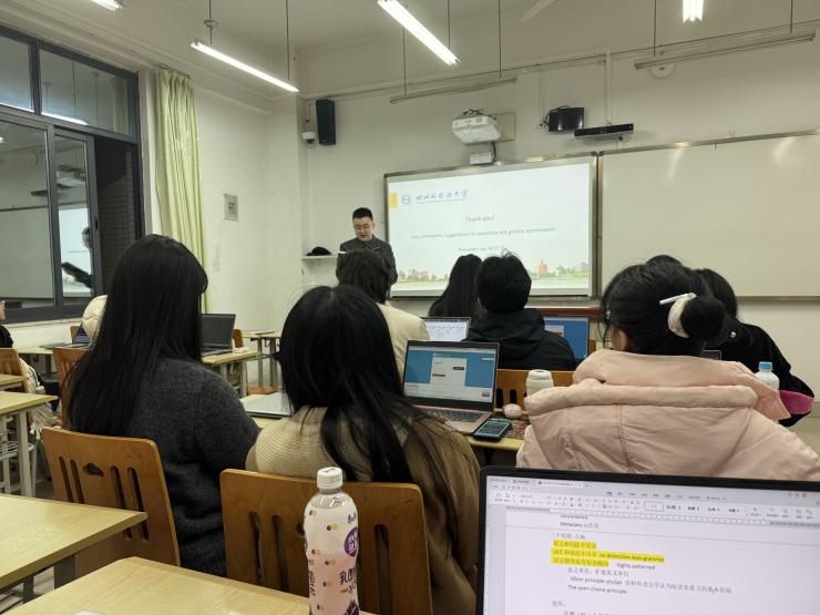 讲座结束后,翻译协会会长赵新雷总结并分享了他在本次讲座中的收获与感悟,并强调了语料库等定量研究方法对于翻译学科等传统人文社科领域的重要价值。现场交流环节,叶军学姐热情地回答了大家提出的问题,为他们的学术探索提供了宝贵的指导。本次讲座不仅为翻译协会的成员们打开了通往语料库构建及语言学相关知识的大门,也加深了大家对翻译现象的本质认知,为每个人的学术之路注入了新的活力。
