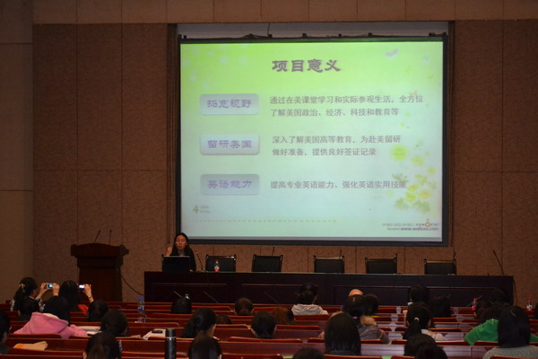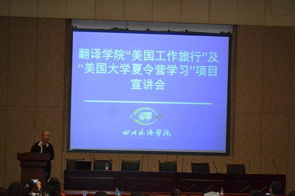 11月9日晚上7点整,明陞m88官方网站“美国工作旅行”及“美国大学夏令营学习”项目宣讲会在宏文楼2楼国际报告厅举行。出席开幕式的嘉宾有:史迪威外语学校王董事长(香港商报重庆主席代表),李副董事长,明陞m88官方网站经理祝朝伟教授,副经理张鹏老师。明陞m88官方网站全体员工参加了会议。会议由副经理张鹏老师主持。