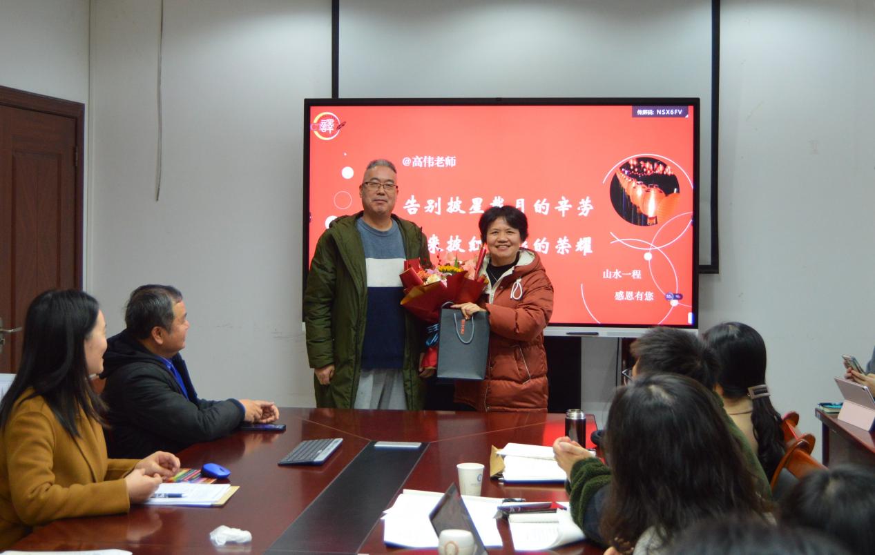 随后,经理李金树代表学院感谢荣休教职工高伟副教授为学院事业发展做出的突出贡献。他希望高伟副教授一如既往地关心和支持学院建设和发展,在享受健康幸福的同时,继续为学院发展献计献策、贡献力量。