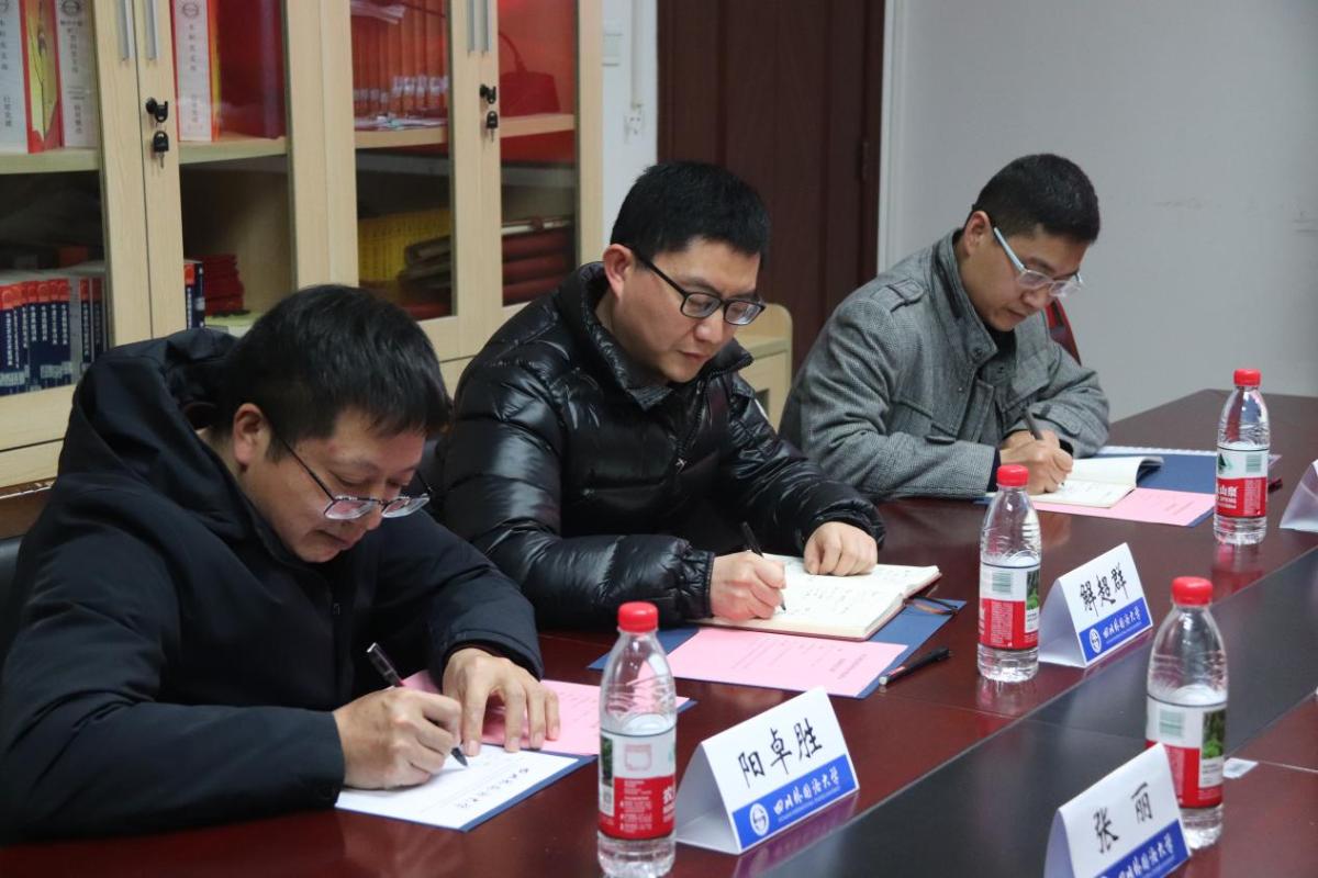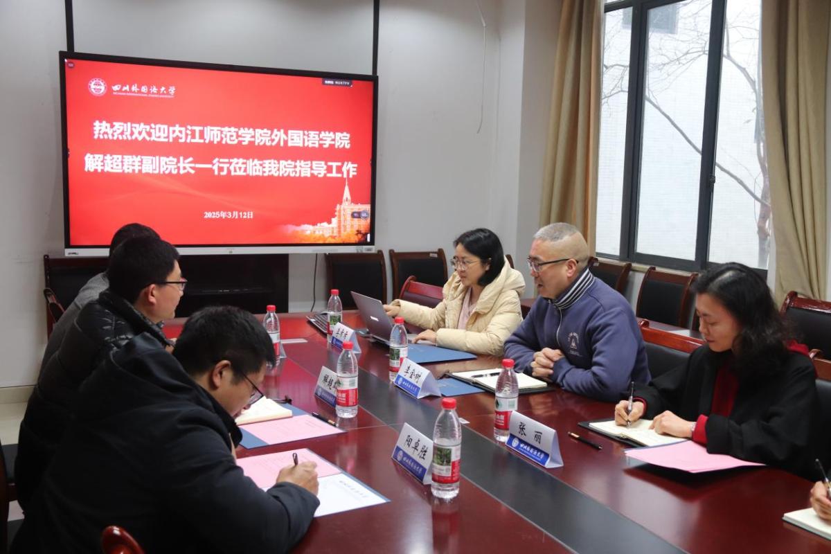 3月12日下午,内江师范学院外国语学院副经理解超群、翻译专业负责人肖强、翻译专业专任教师阳卓胜一行3人莅临公司调研交流。交流会在西区立德楼B109会议室进行。公司党总支书记张丽、经理李金树、副经理李希希参加交流座谈。会议由党总支书记张丽主持。