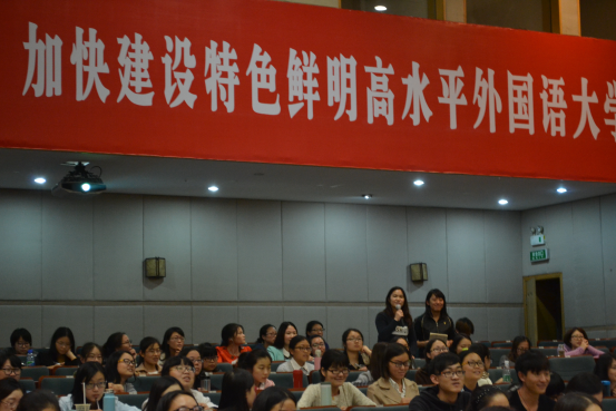 互动交流环节,同学们就领馆工作所需素质、翻译练习方法、职业选择与规划、市场前景、出国发展途径等进行积极交流探讨,廖忠博士和两位嘉宾根据自身经历,认真答疑解惑。同学们深受启发,讲座亦在大家的热烈掌声中圆满落幕。
