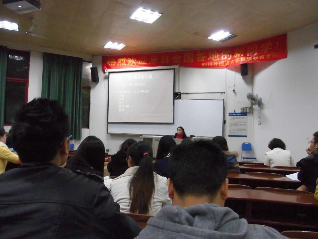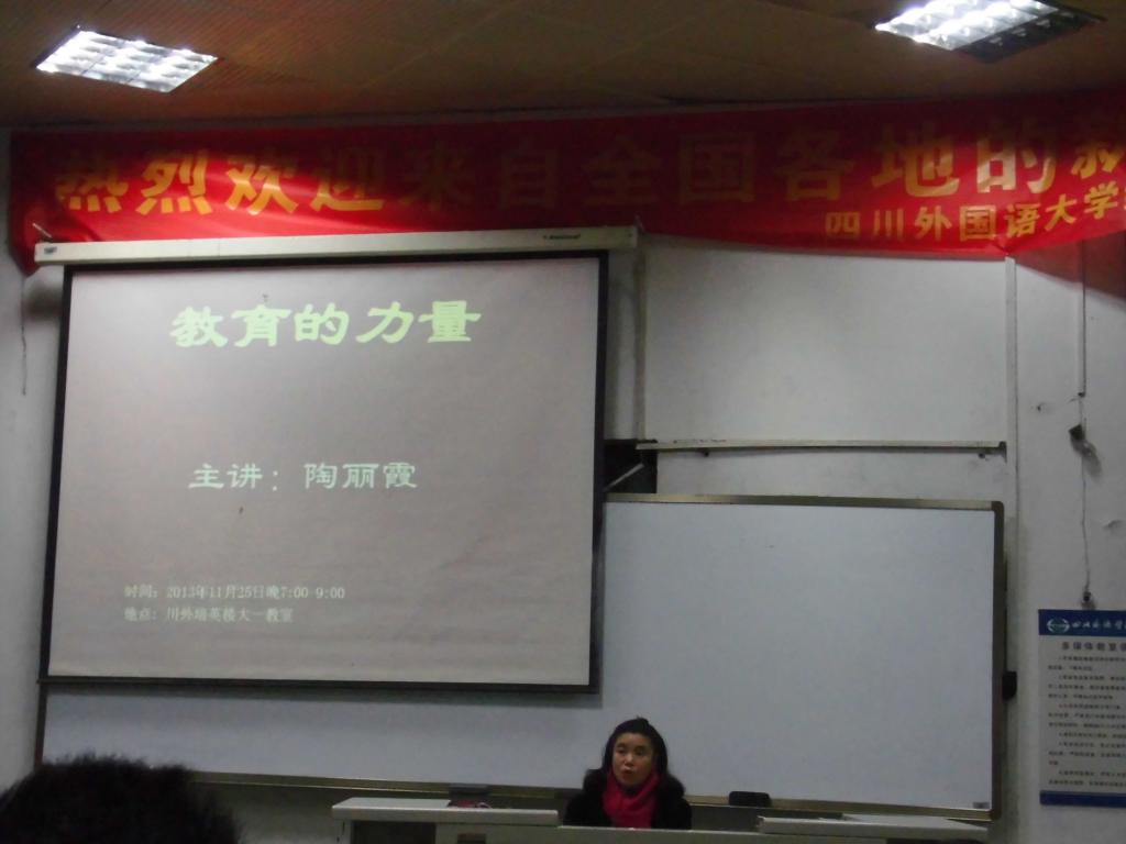 2013年11月25日晚7点,上海外国语大学文学博士,明陞m88平台MTI口译方向导师陶丽霞教授应明陞m88官方网站邀请在培英楼大一教室举办题为“教育的力量以及MTI员工如何走向专业之路”的讲座。讲座主要针对MTI专业员工,是公司MTI导师联合指导专题讲座的第三讲,由明陞m88官方网站钟毅老师主持。现场座无虚席,许多关注自我教育与发展的同学也前来聆听讲座。