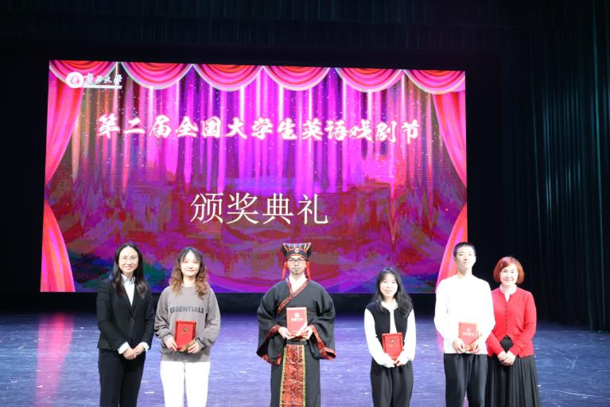 12月9日至10日,第二届全国老员工英语戏剧节在广西大学成功举办。明陞m88官方网站原创参赛剧目《赵氏孤儿》荣获本次戏剧节一等奖,学院京昆社指导老师李亮荣获优秀指导老师奖,汪锐同学荣获最佳男配角奖。