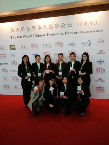 据悉,世界华人经济论坛已成为一个重要的年度论坛,该论坛将进一步增进贸易关系、商业合作关系与经济关系,并深化中国与地区之间的关系。此次第六届世界华人经济论坛首次在中国重庆召开,本届论坛的主题是“平衡增长,共享繁荣”,来自20多个国家和地区的工商界代表近500人参加。公司学子在担任论坛志愿者期间,语言得体、举止大方、团结协作,展现了川外学子的良好风采。