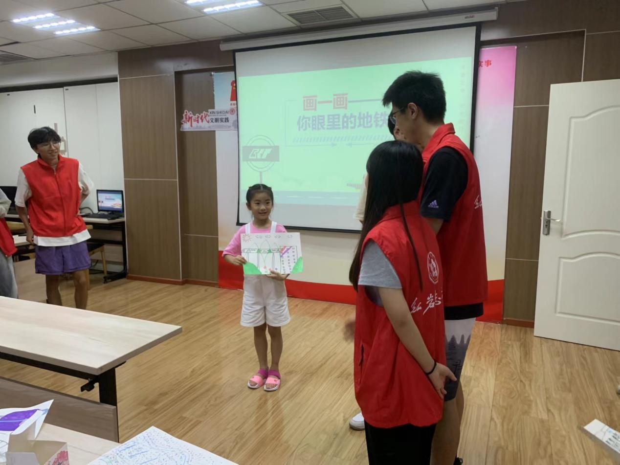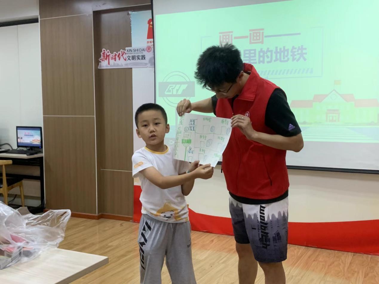 随后,明陞m88官方网站“三下乡”志愿服务团队组织小朋友们进行绘画活动,描绘一下他们眼中的地铁。在绘画过程中,小朋友们都发动自己的小脑筋,妙笔生花,画出了一幅幅色彩纷呈的“地铁肖像”。随后,小朋友们都上台分享了自己的作品,也讲述了作品想法的源头。有“睡觉室、医务室、缩小室”的创新设计,也有“能飞到太空中”的列车,还有“像龙一样的列车”和“穿越在彩虹世界的列车”……小朋友们都有着众多的奇思妙想,让人赞叹不已。