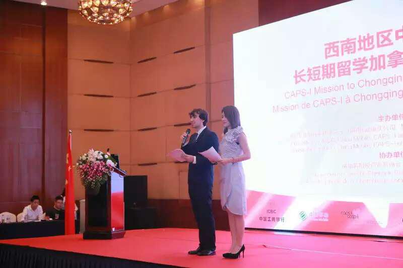 此次赴加留学咨询会与中加教育研讨会由加拿大驻重庆总领事馆主办,特邀“加拿大公立学校国际协会”(Canadian Association for Public schools-International,CAPS-I)代表团到场进行咨询和招生。CAPS-I是全加拿大公立学区和教育局组成的非盈利协会。该协会此次访渝,是近20年来到重庆和西南地区访问的规模最大的北美公立教育局代表团。明陞m88官方网站本科生蒋伟杰、王子聪、李波、郑松、张思琦、刘畅、谢小莉和MTI研究生于双、都洁、杨皓、魏冰、蒋丽军、全倩、沈康、肖亚迪等在两天的翻译活动中以自信的态度、简洁的语言、扎实的功底为本次活动的圆满进行贡献了自己的力量。
