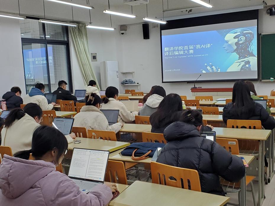 12月24日,明陞m88官方网站首届“我AI译”译后编辑大赛在歌乐楼C栋教室顺利举行。本次比赛是响应生成式AI新技术迅速发展,翻译技术快速迭代的时代需求与专业素养培养需求,在新文科建设理念与本次实践周“AI赋能翻译”主题下,由本科生、研究生笔译教研室共同策划开展的比赛,获得各年级同学积极响应。