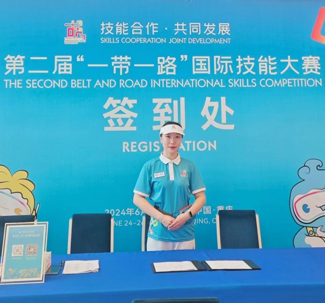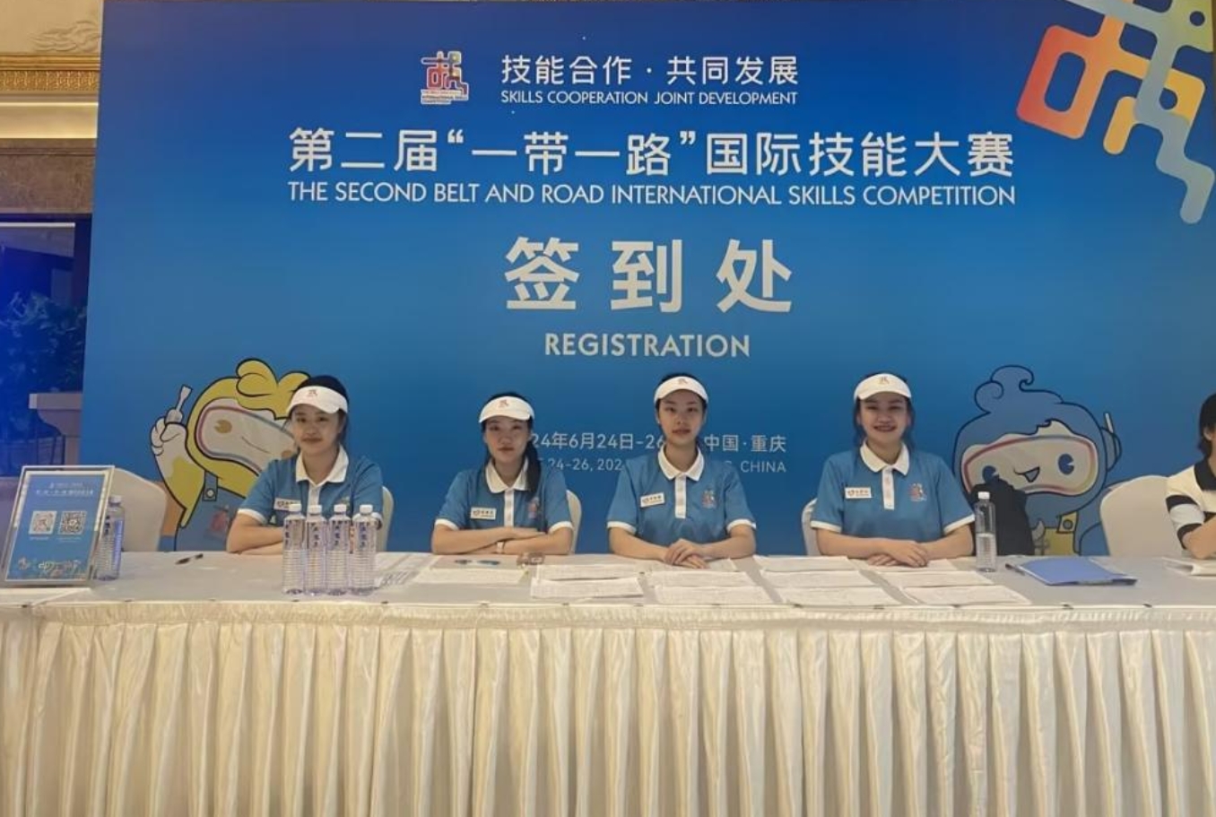 2024年6月24日至26日,由人力资源社会保障部等部门共同举办的第二届“一带一路”国际技能大赛在重庆开赛,大赛以“技能合作·共同发展”为主题,共有来自61个国家和地区的590多名选手、裁判员和有关人员参赛参展参会。公司2023级研究生陈雯、高黎、刘朦朦、宋佳文、汤鹏、王彦心、杨乾鑫七名同学在此次大赛中担任陪同翻译、嘉宾接待、沟通联络等多项工作,为大赛提供高质量志愿服务。