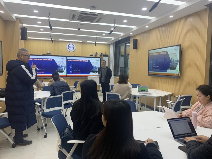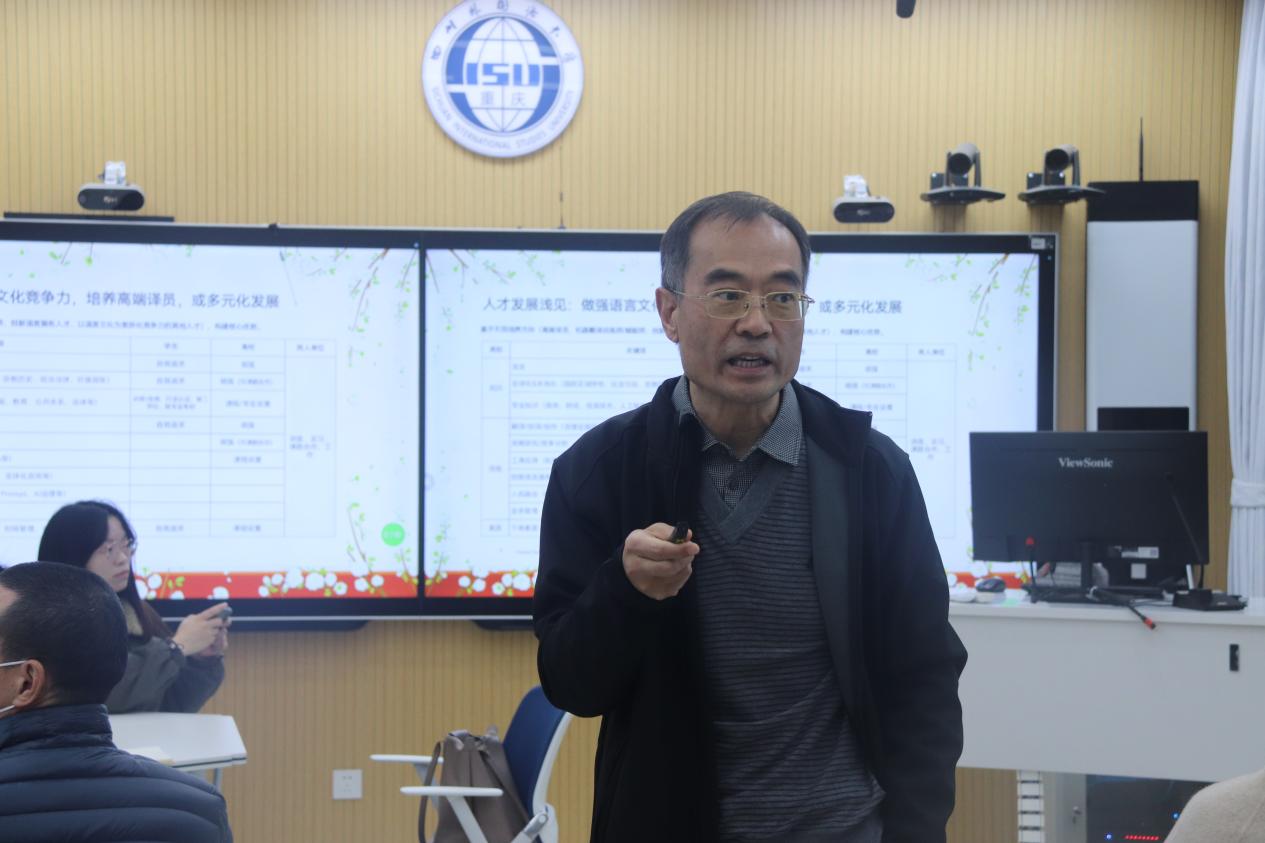 1月15日上午8:30,广东外语外贸大学赵军峰教授应邀于公司教师发展中心智慧教室,做题为“新时代翻译专业教育与教师发展”的讲座。讲座由公司经理李金树教授主持,学院教师、博士研究生与硕士研究生参加了本次讲座。