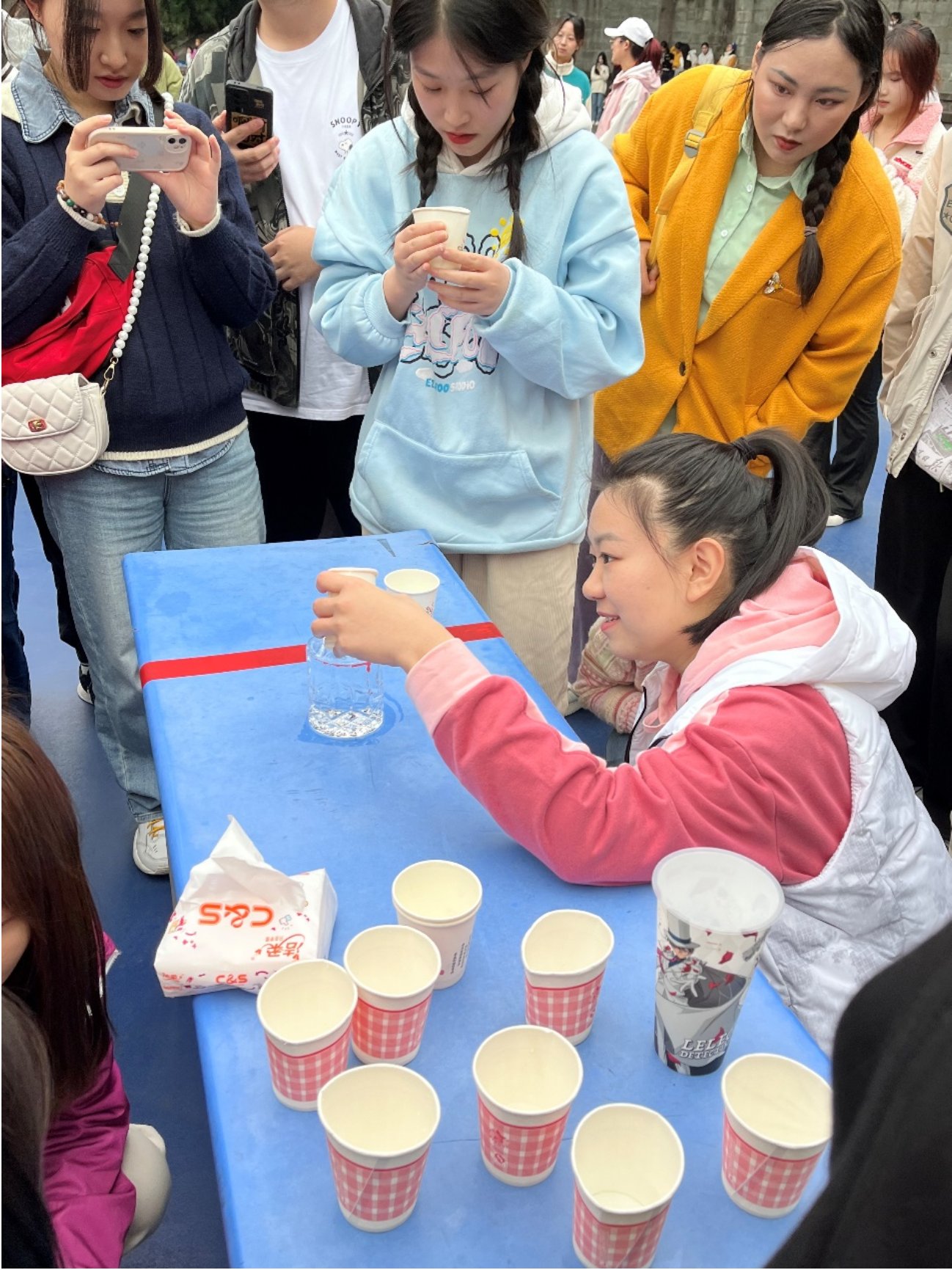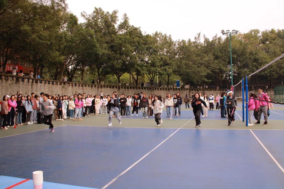 此次趣味运动会分为团体赛、个人赛、友谊赛三轮比拼。团体赛包含两人三足、纸杯大战、团体抢水瓶三个项目,旨在考验团队协作力和合作默契度,为同学们之间增进了解、增强友谊提供了平台。参加两人三足项目的2023级研究生刘汗青说道,“我和队友在前一天就进行了练习,尝试绑住腿向前跑。最开始是有些困难的,但经过练习后,我们今天比赛过程很顺利,也取得了第一名的好成绩。”